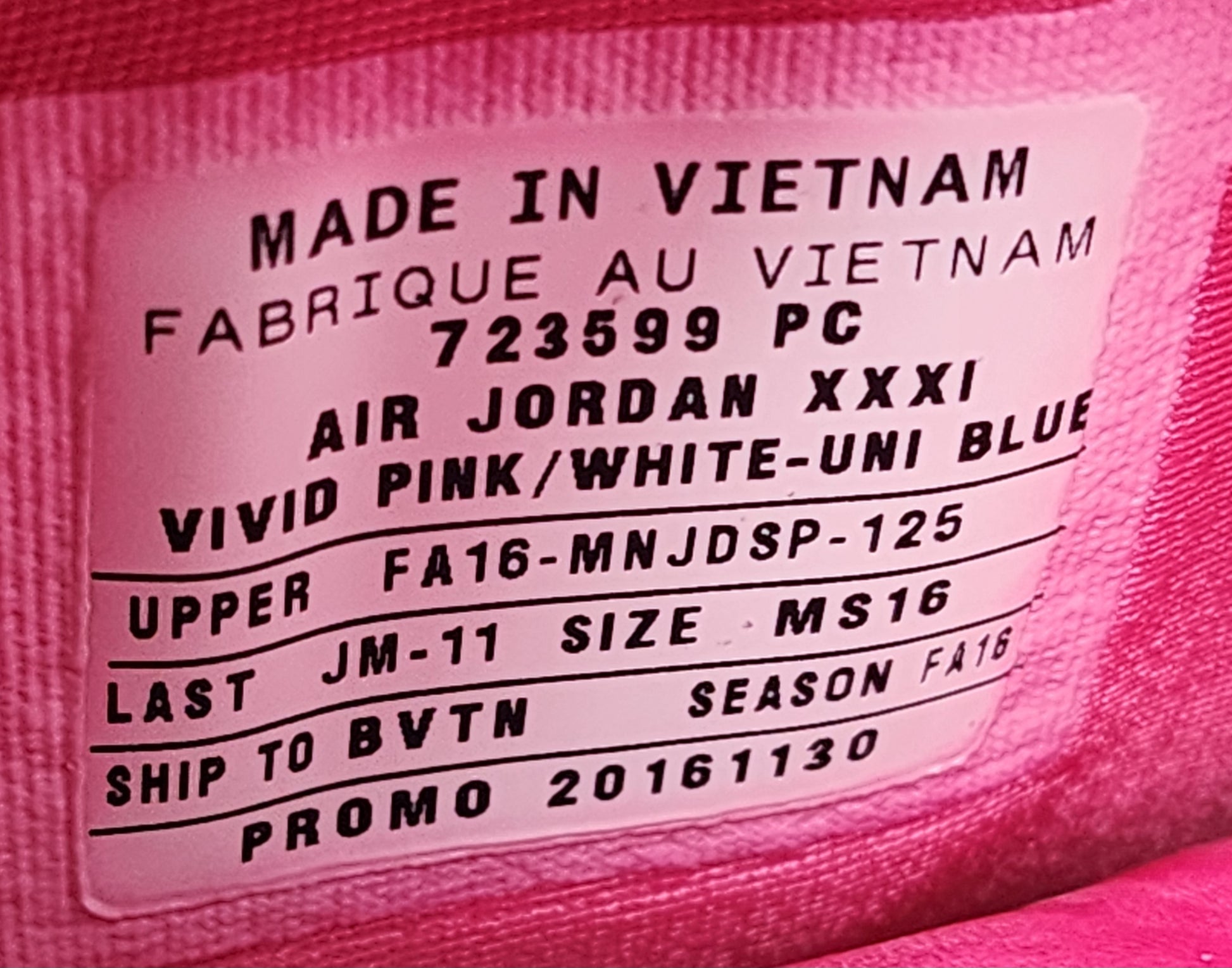 Model: Air Jordan 31 - UNC (University of North Carolina) Tar Heels - BCA (Breast Cancer Awareness) Player Exclusive