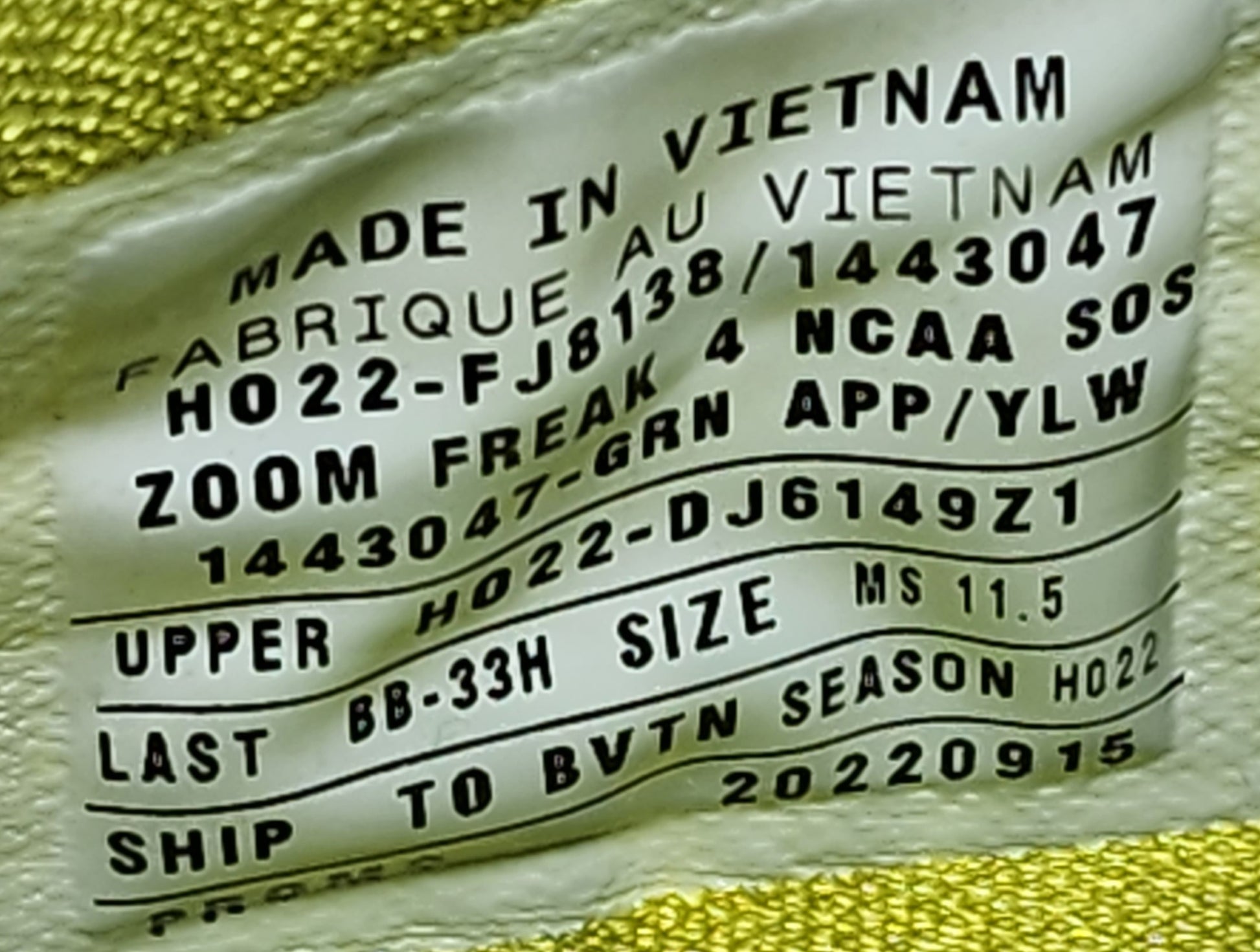 Model: Zoom Freak 4 - Oregon (University of Oregon) Ducks Player Exclusive